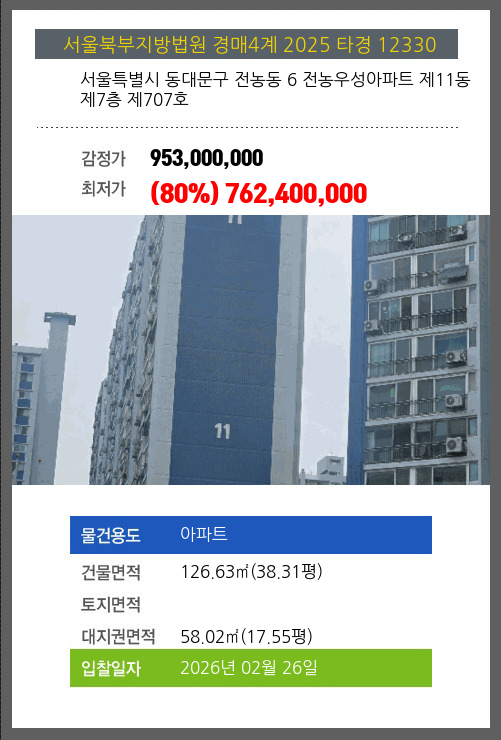 | 신건 | 2026-01-13 | 953,000,000 | 유찰 |