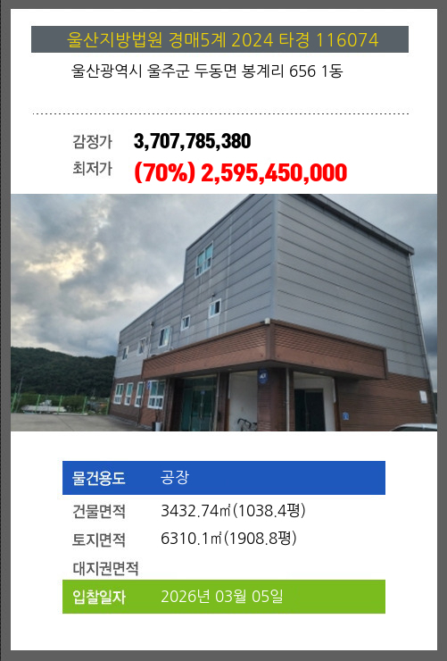 울주공장경매 울주군 두동면 봉계리 656 1동 №2024 타경 116074
