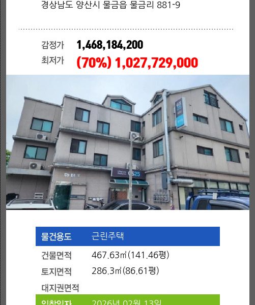 건물면적 3432.74㎡ (1038.4평) 채무자 김** 최저가 (70%) 2,595,450,000
