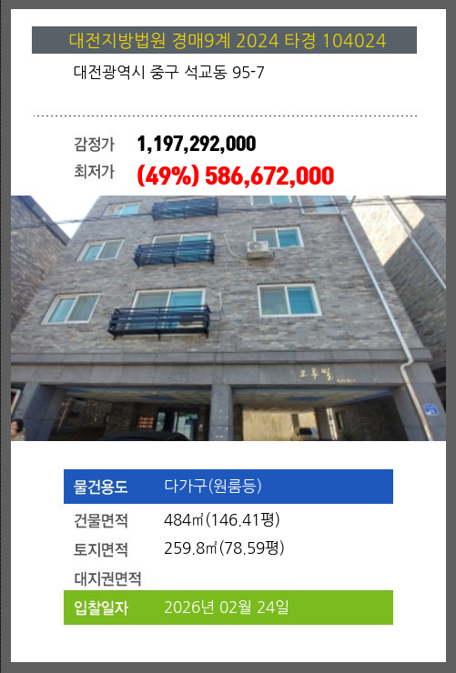 중다가구(원룸등)경매 중구 석교동 95-7 №2024 타경 104024