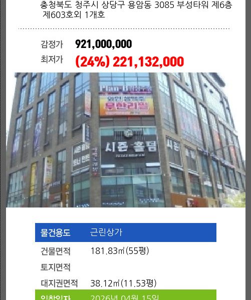 청주주택경매 청주시 청원구 주중동 275-1 외 6필지 №2025 타경 50830