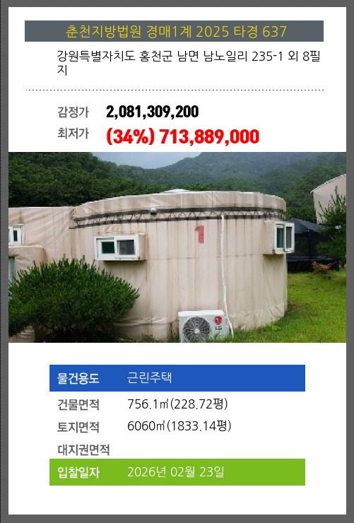 홍천주택경매 홍천군 남면 남노일리 235-1 외 8필지 №2025 타경 637