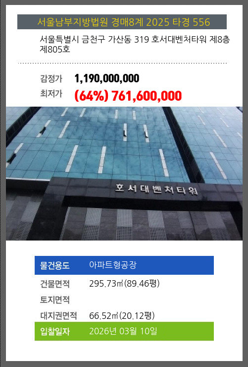 본건은 서울특별시 금천구 가산동 319 호서대벤처타워 제8층 제805호