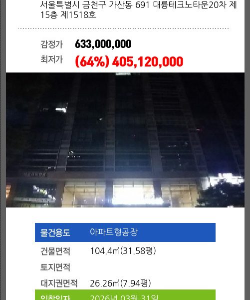 소재하는 아파트형공장경매 물건의 포스팅입니다.