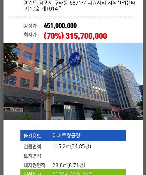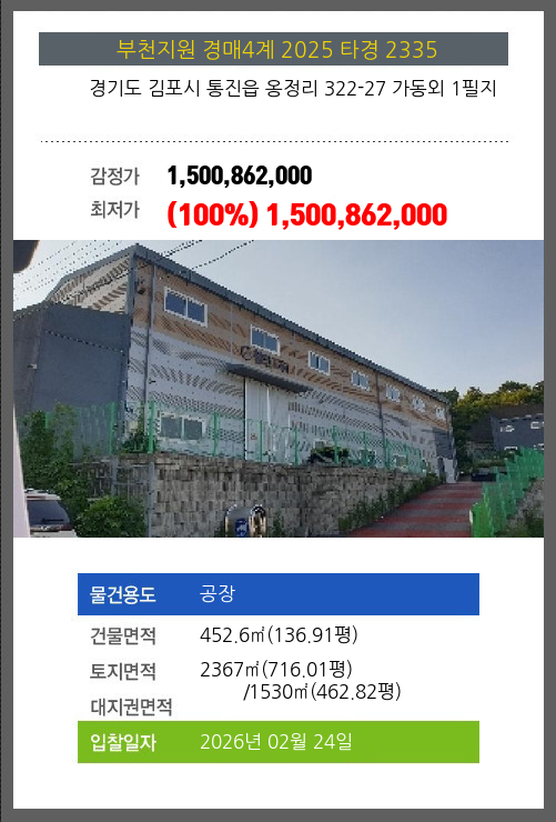 김포공장경매 김포시 통진읍 옹정리 322-27 가동외 1필지 №2025 타경 2335