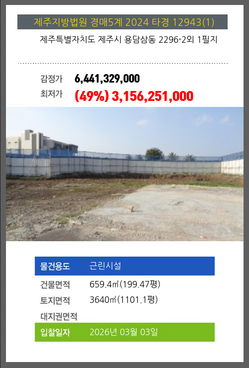 본건은 제주특별자치도 제주시 용담삼동 2296-2외 1필지