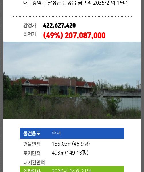 2회 유찰되어 감정가 대비 49%
