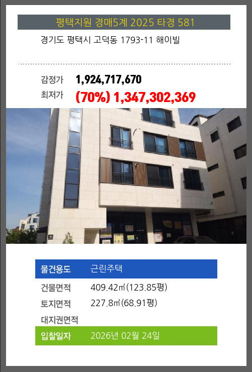본건은 경기도 평택시 고덕동 1793-11 해이빌