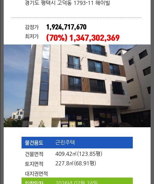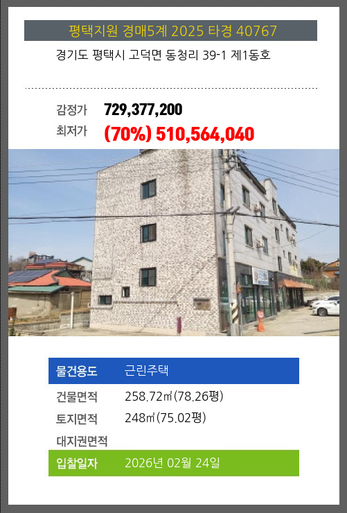 평택주택경매 평택시 고덕면 동청리 39-1 제1동호 №2025 타경 40767