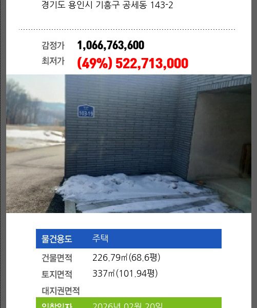 | 신건 | 2026-01-13 | 550,000,000 | 유찰 |