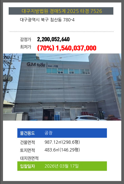 북공장경매 북구 침산동 780-4 №2025 타경 7526