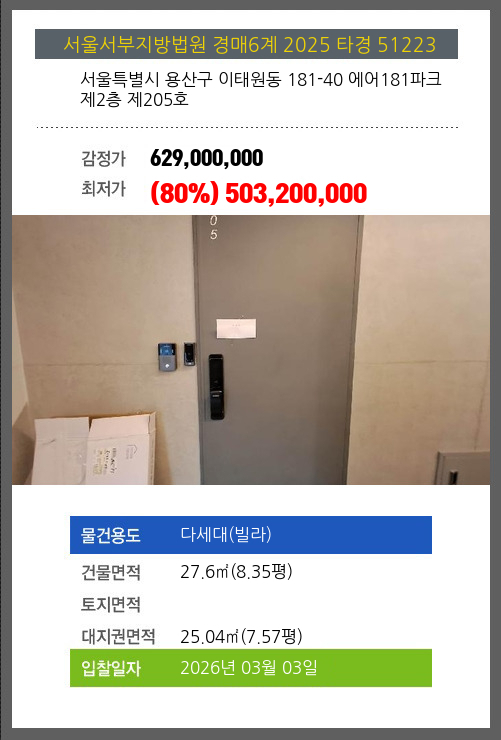 본건은 서울특별시 용산구 이태원동 181-40 에어181파크 제2층 제205호
