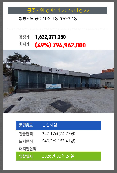 공주시설경매 공주시 신관동 670-3 1동 №2025 타경 22