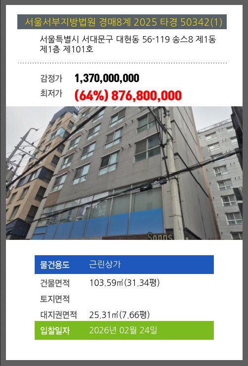 본건은 서울특별시 서대문구 대현동 56-119 송스8 제1동 제1층 제101호