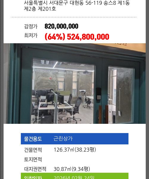 2회 유찰되어 감정가 대비 64%