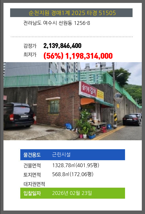 여수시설경매 여수시 선원동 1256-8 №2025 타경 51505