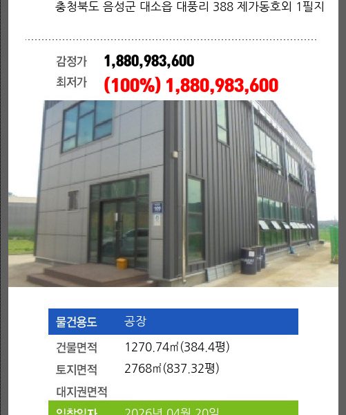 소재지 [지번] 충청북도 음성군 음성읍 평곡리 153-1 외 2필지