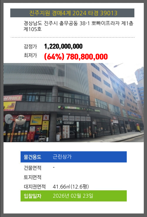 본건은 경상남도 진주시 충무공동 38-1 뽀빠이프라자 제1층 제105호