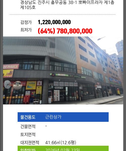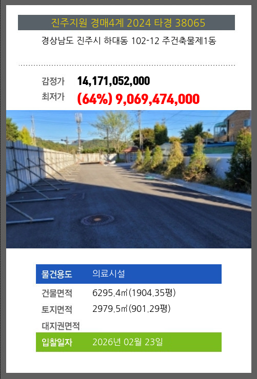 진주의료시설경매 진주시 하대동 102-12 주건축물제1동 №2024 타경 38065