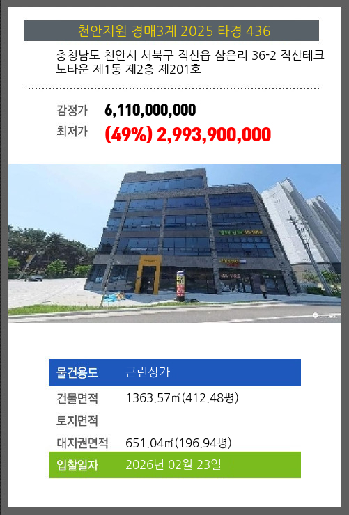 본건은 충청남도 천안시 서북구 직산읍 삼은리 36-2 직산테크노타운 제1동 제2층 제201호