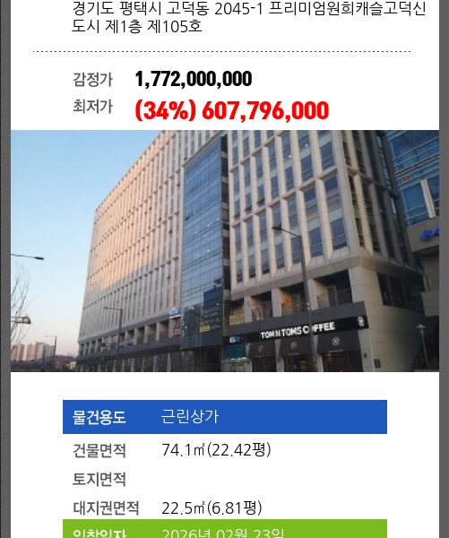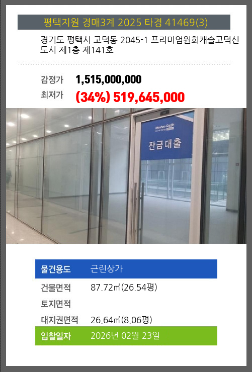 본건은 경기도 평택시 고덕동 2045-1 프리미엄원희캐슬고덕신도시 제1층 제141호