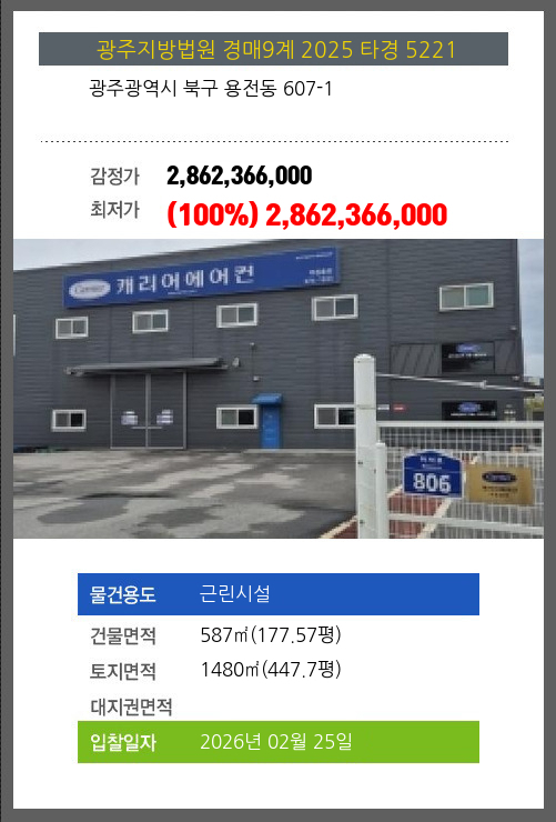 | 건물면적 | 587㎡ (177.57평) | 채무자 | ㈜** | 최저가 | (100%) 2,862,366,000 |