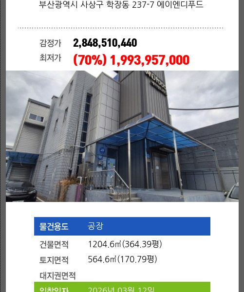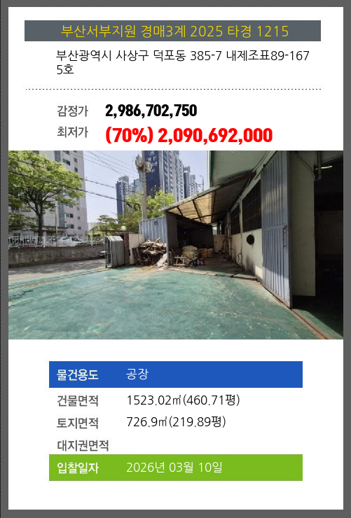 사상공장경매 사상구 덕포동 385-7 내제조표89-1675호 №2025 타경 1215