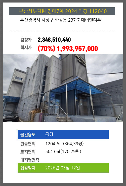 본건은 부산광역시 사상구 학장동 237-7 에이엔디푸드