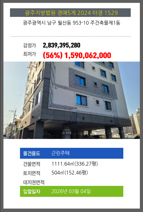 본건은 광주광역시 남구 월산동 953-10 주건축물제1동