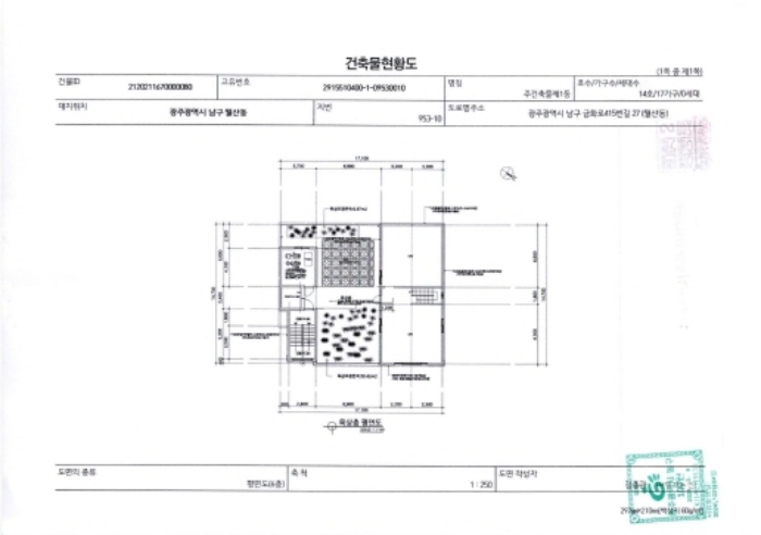 | 소재지 | [지번] 광주광역시 남구 월산동 953-10 주건축물제1동 [도로명 주소] 광주광역시 남구 금화로415번길 27 주건축물제1동 |