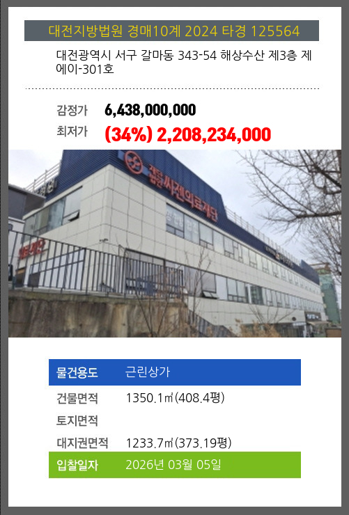 본건은 대전광역시 서구 갈마동 343-54 해상수산 제3층 제에이-301호