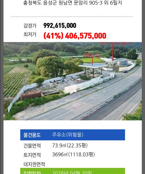 소재하는 주유소(위험물)경매 물건의 포스팅입니다.