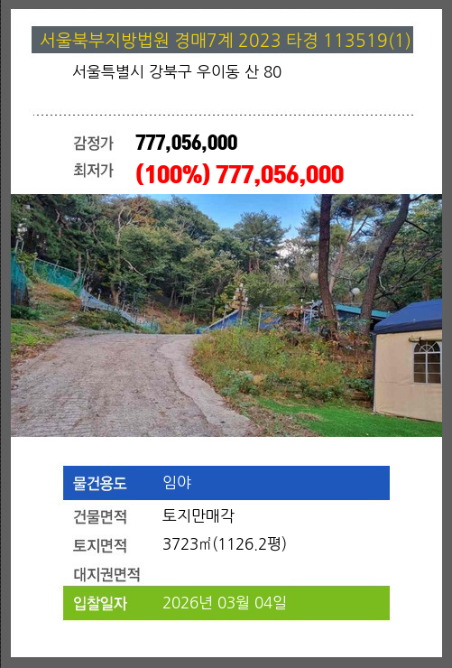 본건은 서울특별시 강북구 우이동 산 80