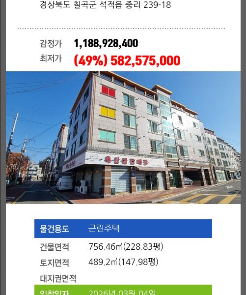 건물면적 채무자 김** 최저가 (49%) 2,207,813,000