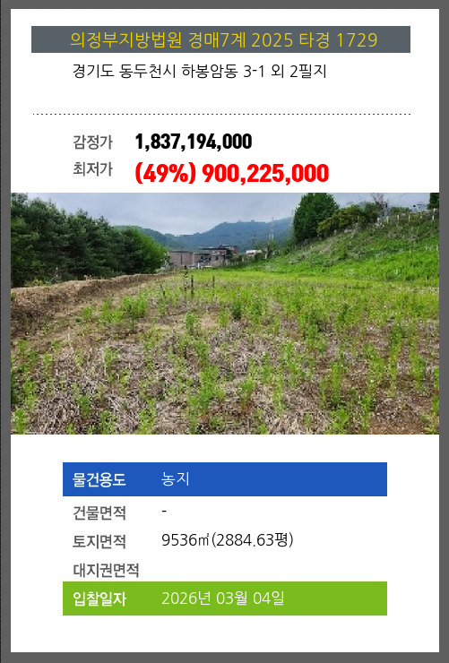 | 소재지 | [지번] 경기도 동두천시 하봉암동 3-1 외 2필지 | ||||