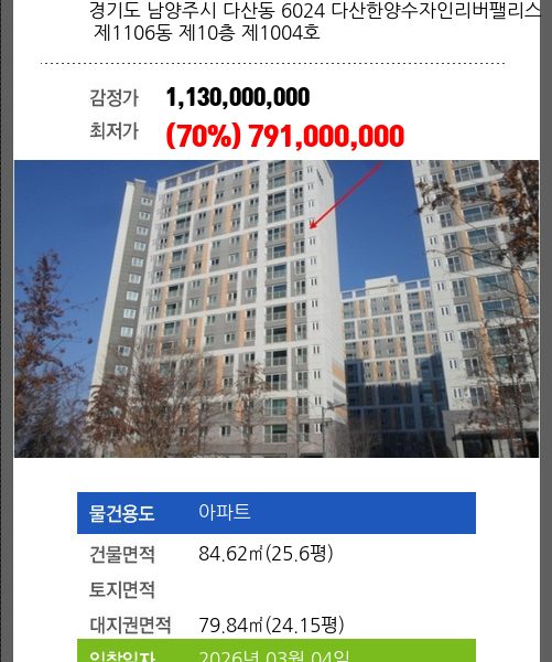 | 건물면적 | – | 채무자 | 이** | 최저가 | (49%) 900,225,000 |