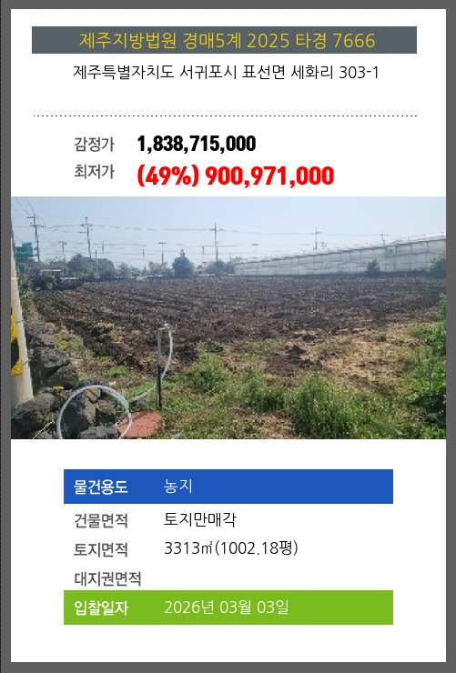 서귀포농지경매 서귀포시 표선면 세화리 303-1 №2025 타경 7666