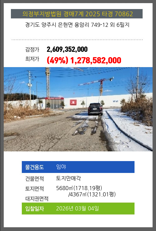 | 소재지 | [지번] 경기도 양주시 은현면 용암리 749-12 외 6필지 | ||||