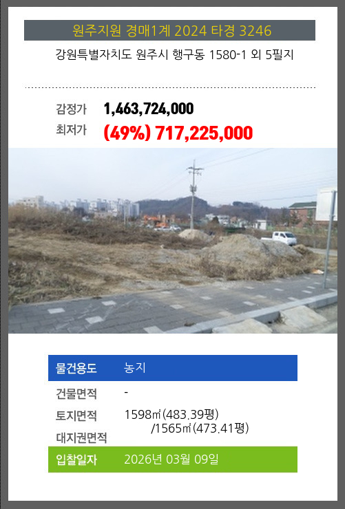 | 소재지 | [지번] 강원특별자치도 원주시 행구동 1580-1 외 5필지 | ||||
