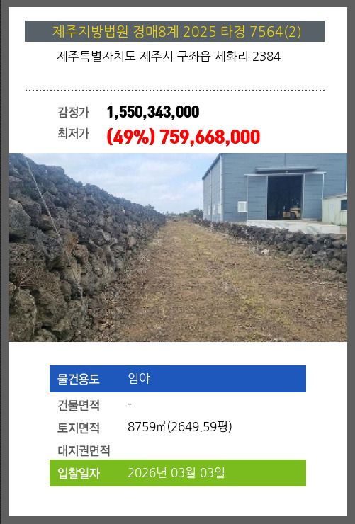 제주임야경매 제주시 구좌읍 세화리 2384 №2025 타경 7564(2)