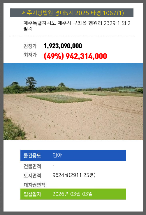 | 소재지 | [지번] 제주특별자치도 제주시 구좌읍 행원리 2329-1 외 2필지 | ||||
