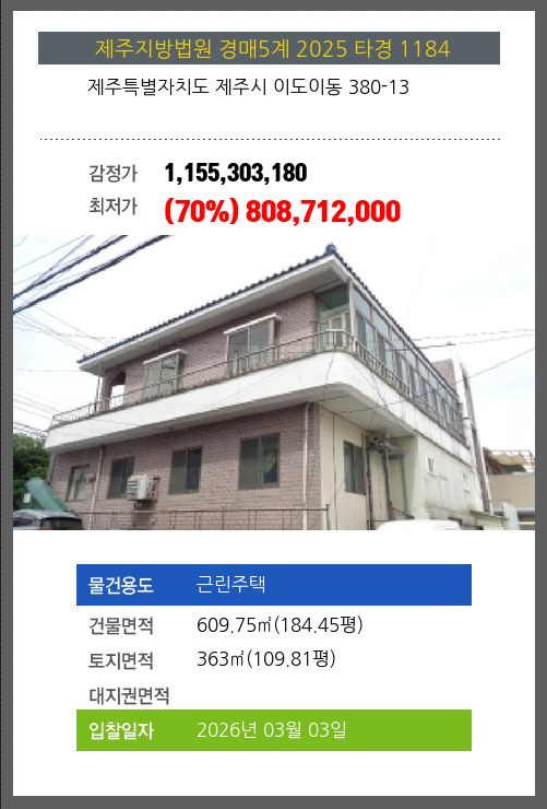 본건은 제주특별자치도 제주시 이도이동 380-13