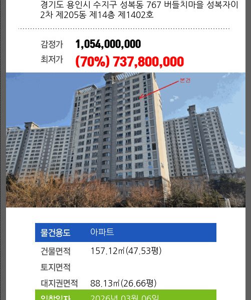 용도 아파트 채권자 ㈜**외1명 감정가 815,000,000