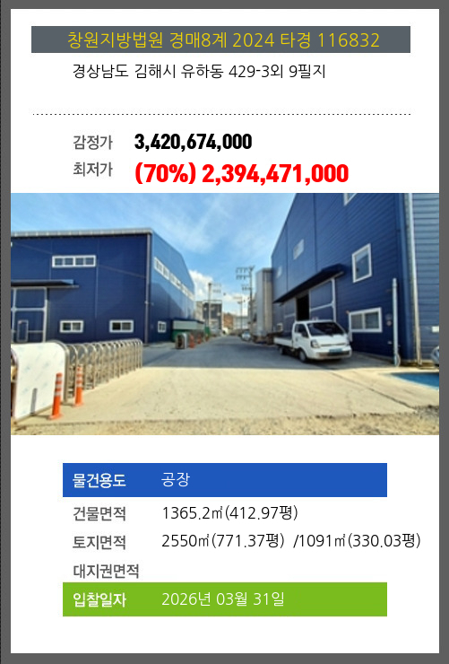 김해공장경매 김해시 유하동 429-3외 9필지 №2024 타경 116832
