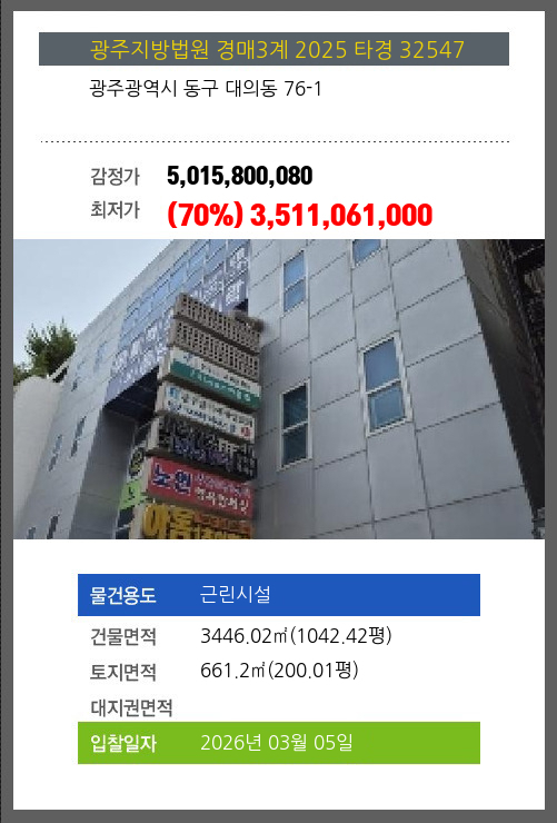 동시설경매 동구 대의동 76-1 №2025 타경 32547