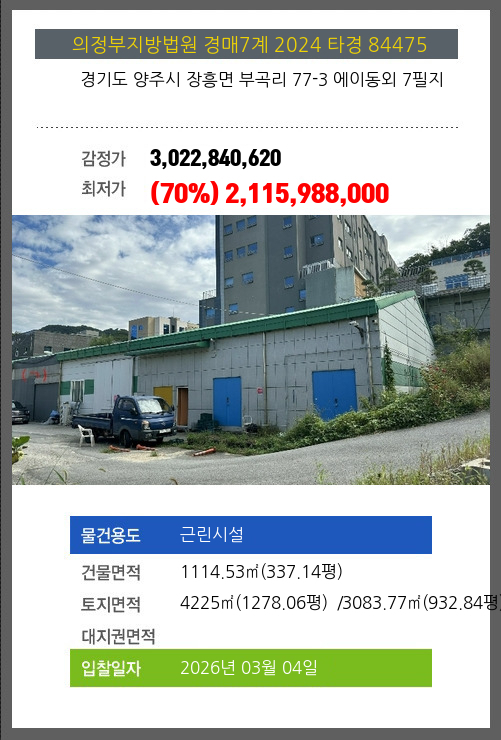 본건은 경기도 양주시 장흥면 부곡리 77-3 에이동외 7필지