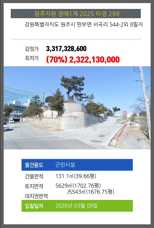 본건은 강원특별자치도 원주시 판부면 서곡리 544-2외 8필지