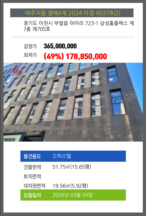 본건은 경기도 이천시 부발읍 아미리 723-1 삼성홈플렉스 제7층 제705호