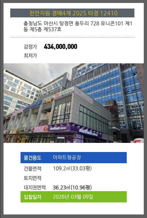 본건은 충청남도 아산시 탕정면 용두리 728 유니콘101 제1동 제5층 제537호