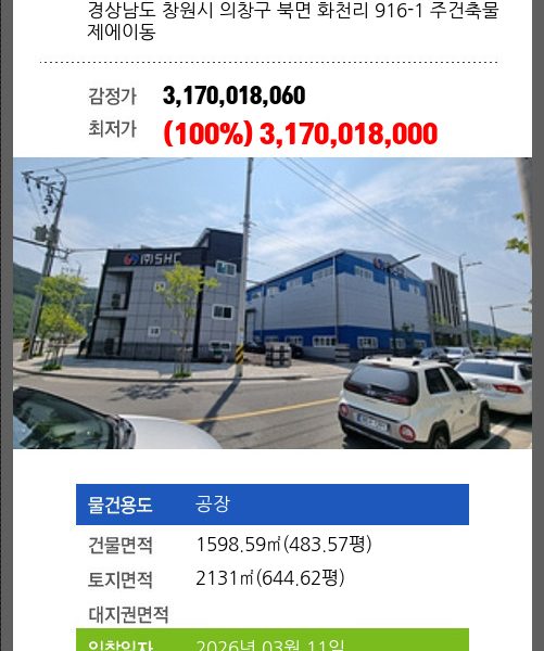 건물면적 5224.06㎡ (1580.27평) 채무자 ㈜** 최저가 (100%) 8,938,606,050